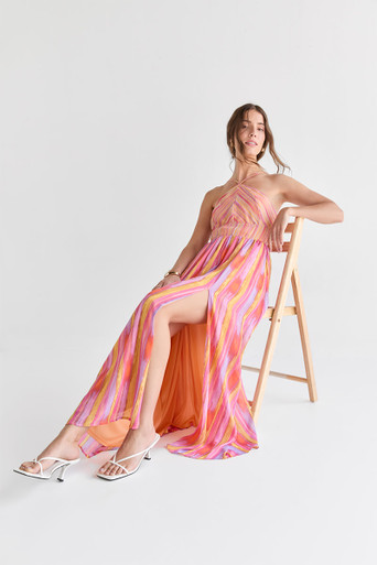 Halter Striped Slit Maxi Dress
