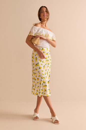 Lemon Print Fitted Midi Skirt
