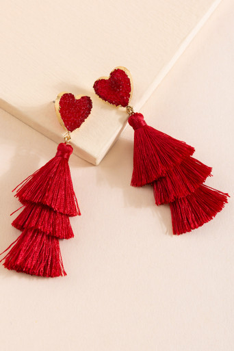 Druzy Heart Post Tassel Drop Earrings