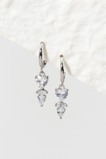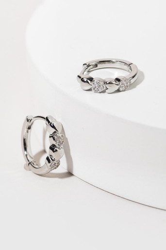 Fine Silver Plated CZ Heart Huggie Earrings