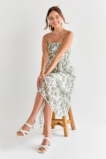 Floral Waisted Tiered Maxi Dress