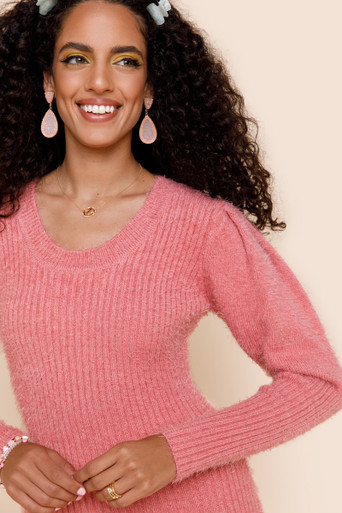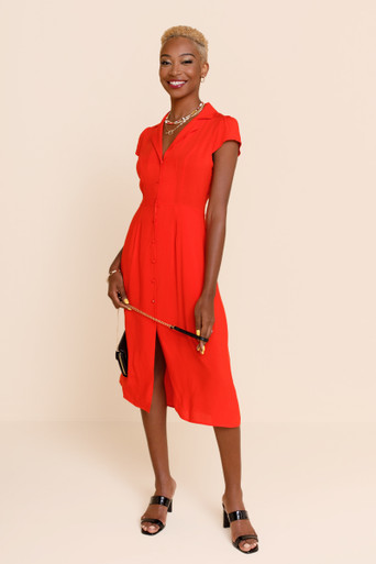 - Length: 33.75″ / Bust: 33.50″ / Waist: 40.50 – Measured from a size small – 100% Polyester – Non stretch – Machine wash cold, hang to dry. – Dress hits above the knee – Models are approximately 5’10” and wear a size small. – Made in China