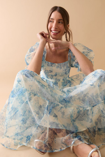 Puff Sleeve Baby Doll Midi Dress