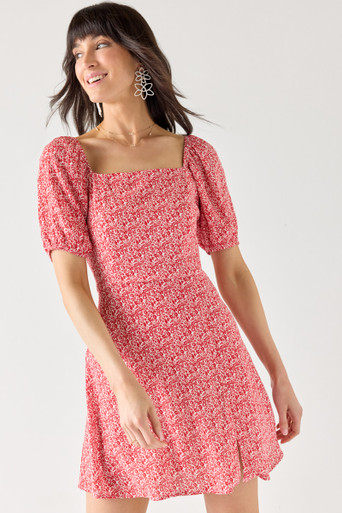 Puff Shoulder Floral Mini Dress