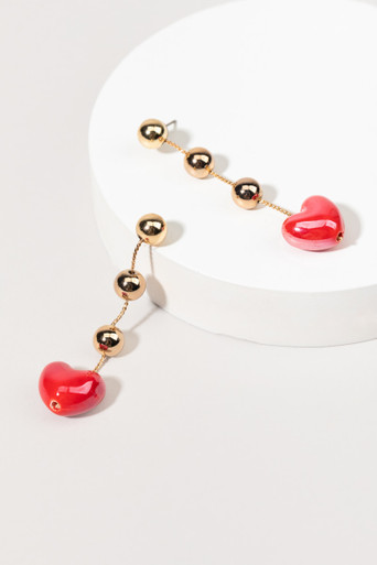 Puffy Heart On Gold Bead String Earrings