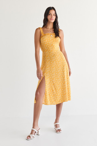 Ruffle Strap And Neckline Floral Midi Dress