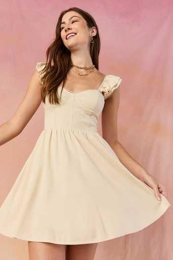 Ruffle Strap Corset Top Linen Mini Dress
