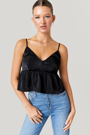 Satin V-Neck Babydoll Top