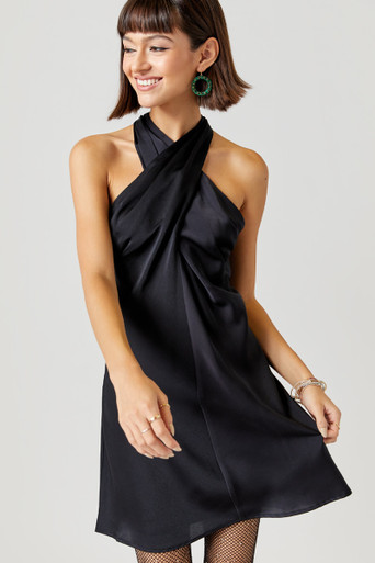 Satin Twist Halter Mini Dress