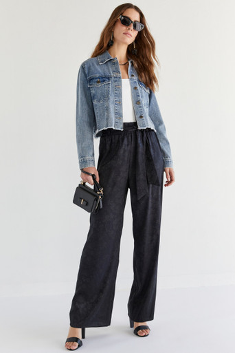 Satin Jacquard Floral Wide Leg Pants
