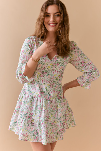 V Neck Floral Mini Swing Dress